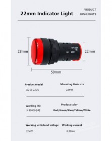 24V-Piros-1db 22mm jelzőkészülék világítás LED Erős jelzőkészülék Vezérlőjel AD16-22DS Panel rögzítés lámpa Többszínű 20mA