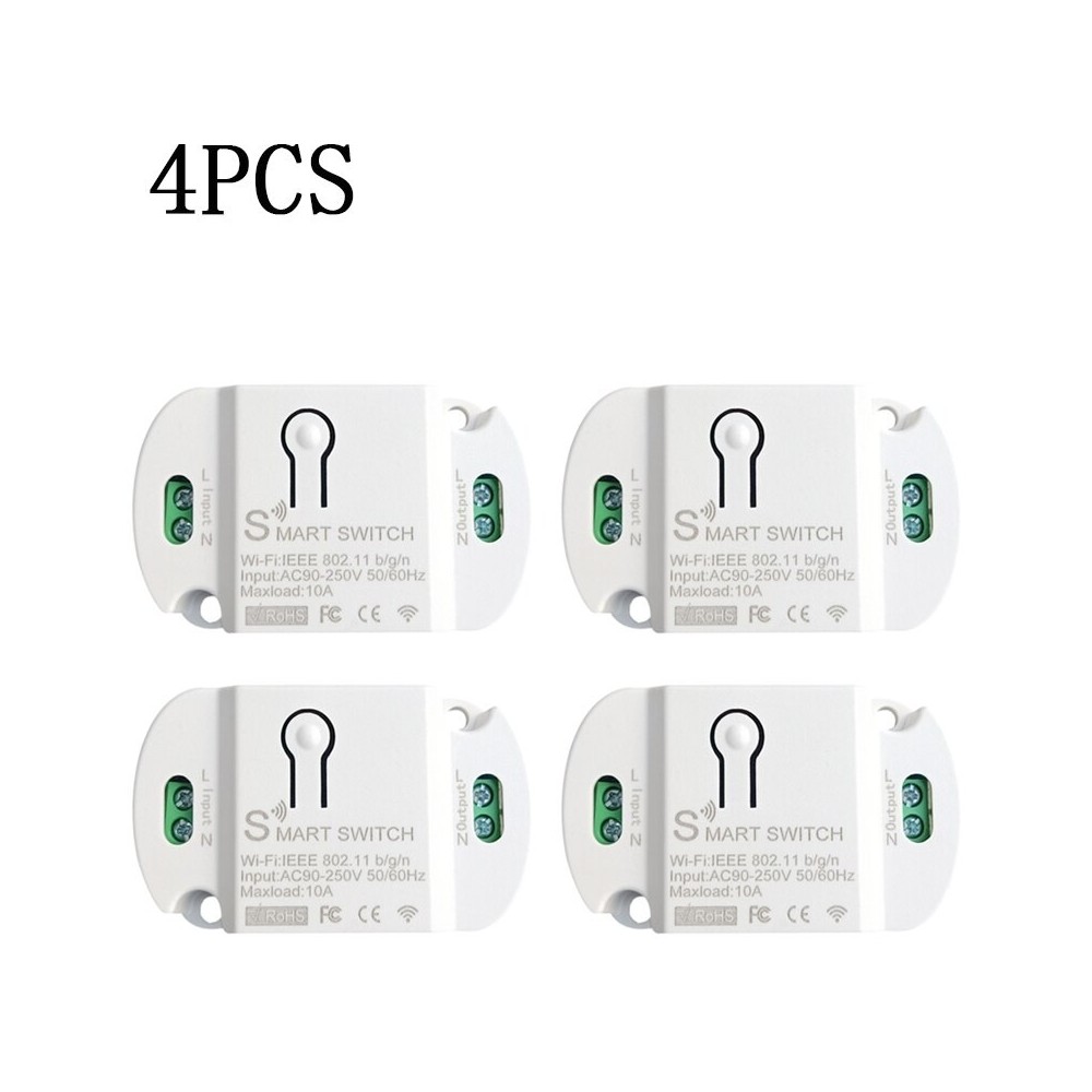 Csomag: 4 db - 10A Wifi Smart Switch vezeték nélküli kapcsolómodul Intelligens otthon automatizálási időzítő Tuya APP